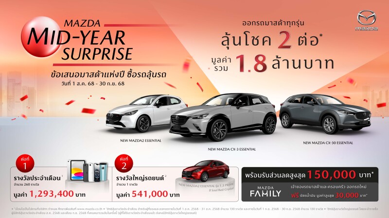 มาสด้าเดินหน้ากระตุ้นตลาดรถยนต์ครึ่งปีหลัง ครั้งแรกและครั้งเดียวในรอบทศวรรษ อัดแคมเปญแรงต้อนรับลูกค้...